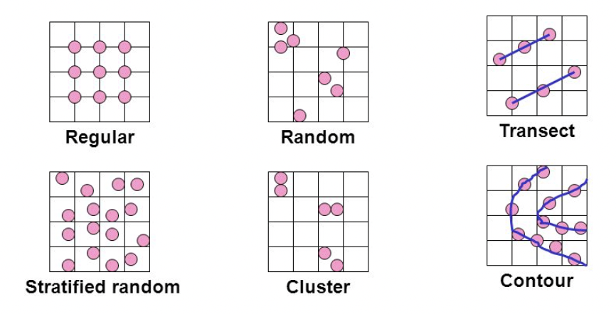 Visitar todos los lugares de un área de estudio para medir la altura, la concentración o la magnitud de un fenómeno suele ser difícil o caro. En su lugar, se puede medir el fenómeno en lugares de muestreo estratégicamente dispersos, y los valores predichos se pueden asignar a todos los demás lugares. Los puntos de entrada pueden estar espaciados de forma aleatoria o regular o basarse en un esquema de muestreo.